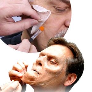 Après application, des cosmétiques et/ou de la peinture sont utilisés pour colorer les prothèses et la peau. Pour obtenir les couleurs souhaitées et réaliser une transition réaliste de la peau à la prothèse.