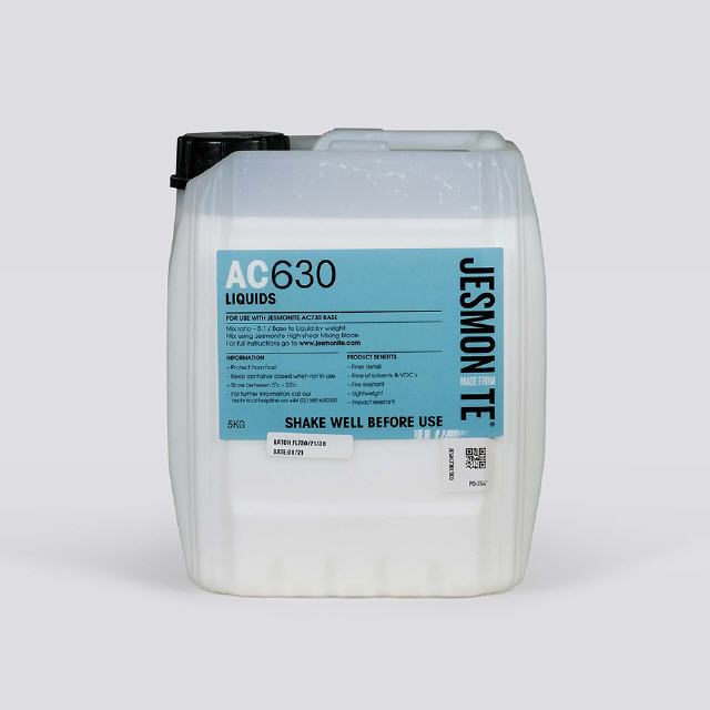 Jesmonite® AC630 est un composite à base de ciment modifié par un polymère acrylique. C’est un matériau compensé contre le retrait, de faible perméabilité et durable dans toutes les conditions climatiques. Il contient une teneur réduite en chaux libre et une alcalinité plus faible, ce qui entraîne une réduction significative de l’efflorescence par rapport aux systèmes à base de ciment Portland ordinaire. Le produit contient un fin agrégat décoratif et des pigments en poudre, soigneusement contrôlés pour garantir une finition décorative de surface uniforme. Il est fourni en deux composants : un liquide acrylique à base d’eau et une base pré-mélangée.