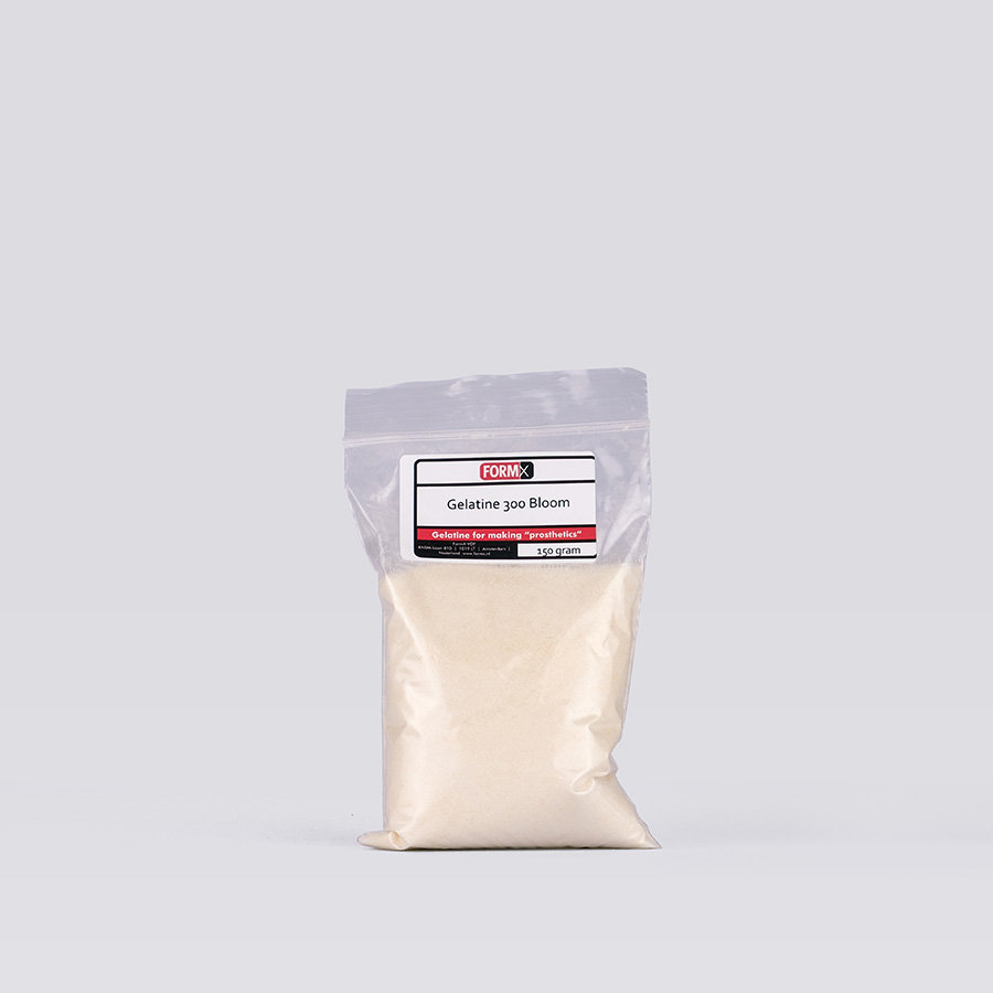 Gélatine de qualité prothétique; peut être utilisé pour fabriquer de la gélatine pour les prothèses moulées, mais peut également être utilisé directement sur la peau.