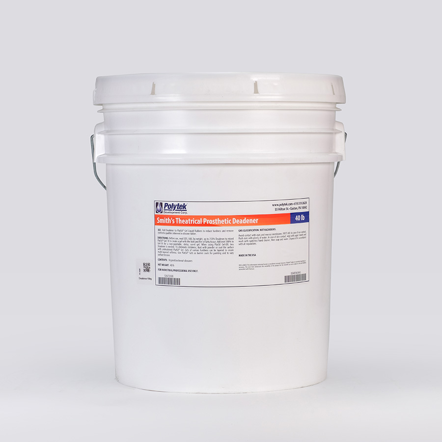 l’agent gélifiant le plus important à utiliser avec Platsil Gel 00. Si vous créez une pièce prothétique et que vous souhaitez l’adoucir de manière à ce qu’elle bouge comme une chair, vous devrez ajouter le Smiths Deadener à 200% (quantité typique de Deadener) Et 175%pour une prothèse faciale Rappelez-vous que lorsque vous utilisez le Deadener, il transforme le matériau en gel collant et doit être encapsulé avant de verser. Pour cela, nous vous recommandons d'utiliser Super Baldiez ou Platsil Gel 10 épongé dans le moule.