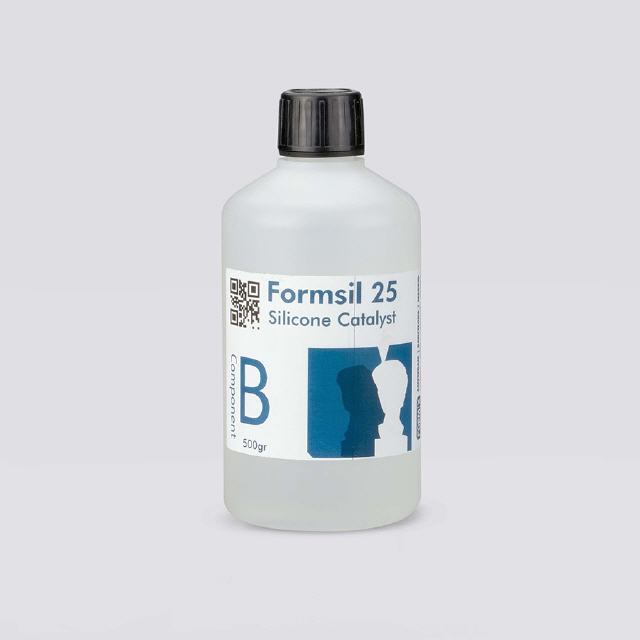 Silicone souple pour les moules de coulée. Peut-être épaissie avec l'agent épaississant Thi-Vex. Dureté shore A25. Couleur: Blanc. FormSil 25 a une viscosité faible et se coule facilement sans dégazement.