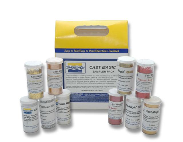 Un moyen facile d'ajouter une variété infinie d'effets métalliques brillants, de paillettes et de couleurs aux pièces moulées finies. Cast Magic ™ est également utile pour reproduire la sculpture et ajouter différents effets de fonte aux modèles et prototypes. Avec le système Cast Magic ™, vous pouvez créer des effets de coulée spectaculaires en quelques minutes contre des heures ou des jours pour l'outillage manuel et la finition. Les pièces moulées finies sont solides et durables. Ils sont également résistants aux UV et aux intempéries. Idéal pour créer des enseignes, des affichages, des effets spéciaux et d'autres applications de moulage.